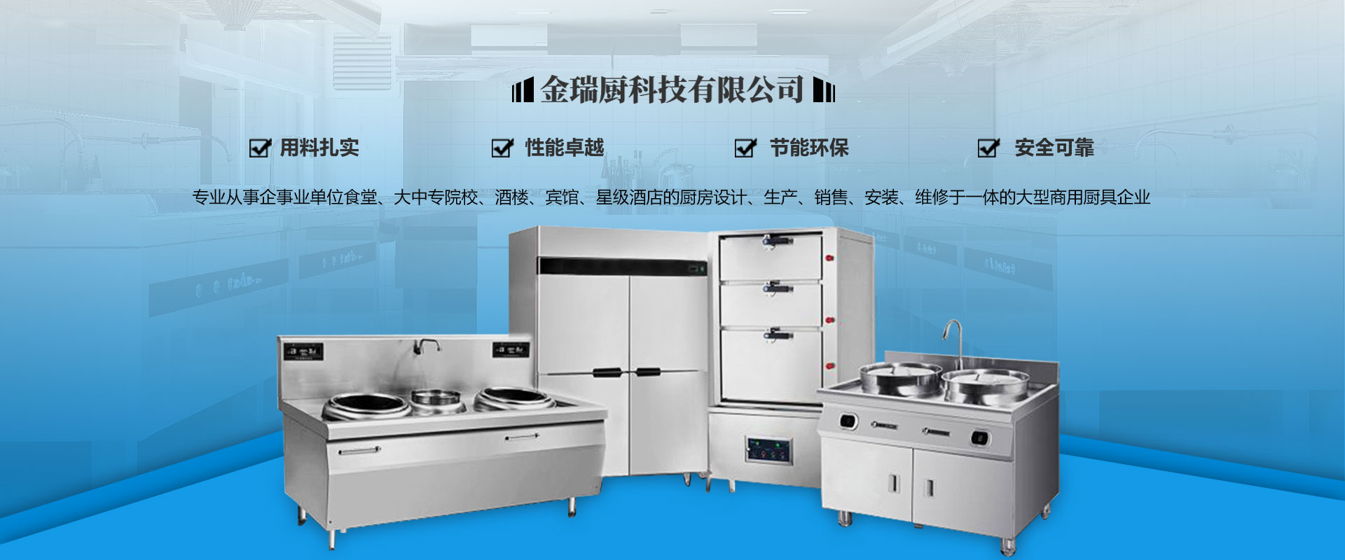四川金瑞廚科技有限公司是一家專業(yè)從事企事業(yè)單位食堂、大中專院校、酒樓、賓館、星級酒店的廚房設(shè)計、生產(chǎn)、銷售、安裝、維修于一體的大型商用廚具企業(yè),。公司擁有一批經(jīng)過專業(yè)培訓(xùn)的高素質(zhì)管理人員及工程技術(shù)人員,團(tuán)隊分工實(shí)施工程策劃、產(chǎn)品研發(fā)、設(shè)計、制造、檢驗(yàn)、安裝、售后服務(wù)等方面的工作,擁有從設(shè)計、安裝、調(diào)試到提供完善迅速的售后服務(wù)一體化的專業(yè)水準(zhǔn)。公司主要銷售廚房設(shè)備、不銹鋼制品、酒店設(shè)備、食品加工設(shè)備、制冷設(shè)備、通風(fēng)設(shè)備、消音設(shè)備、防水處理設(shè)備等。